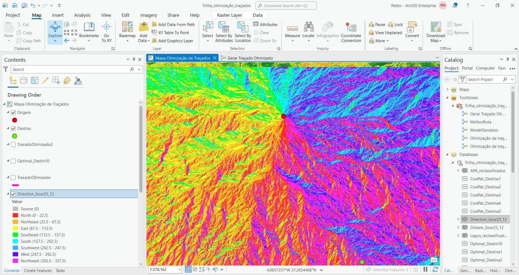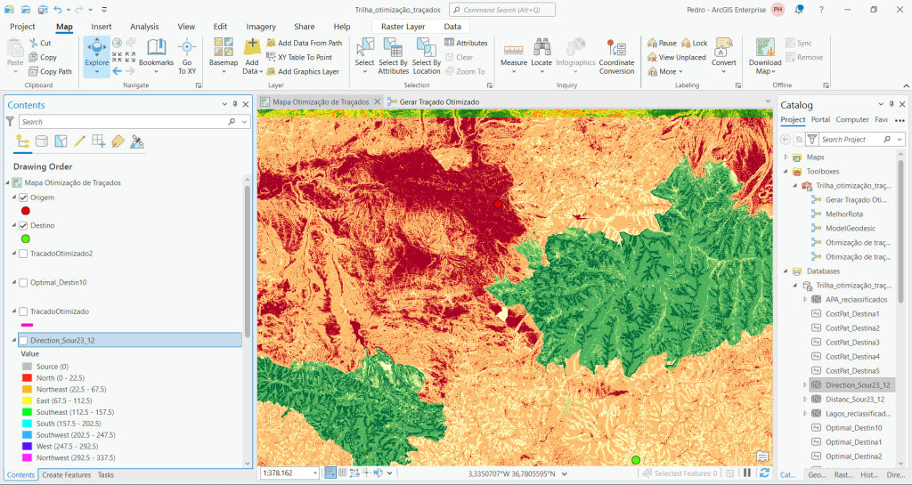 Baseado na superfície de custo criada no vídeo anterior, iremos calcular o menor custo acumulado para sair da origem e alcançar todas as células do raster. Neste processo iremos utilizar a ferramenta Distance Accumulation.